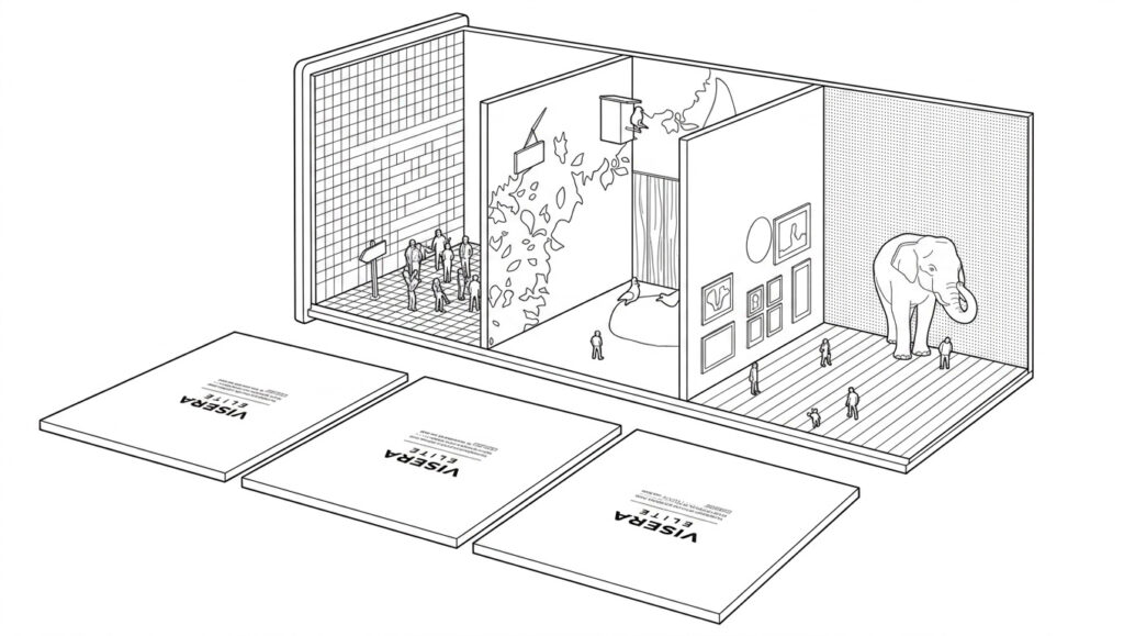 Die Box besteht aus drei Räumen, die jeweils einem Produktvorteil gewidmet sind.